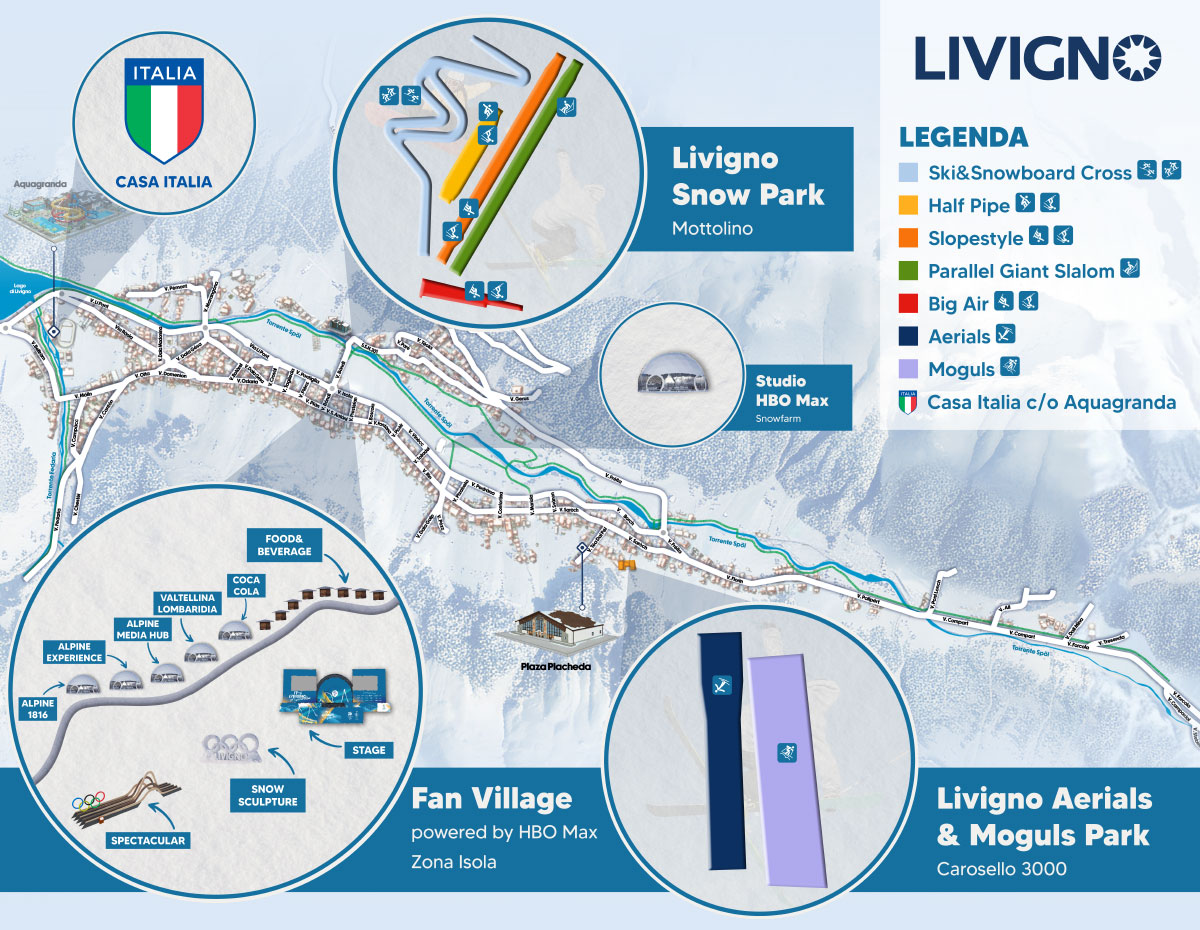 Dal 7 al 22 febbraio, ogni giorno dalle 9.00 alle 23.00, il palco centrale del Fan Village diventa il cuore pulsante dei Giochi: tutte le principali gare Olimpiche e Paralimpiche vengono trasmesse in diretta, non solo quelle ospitate a Livigno, per vivere insieme ogni sfida, ogni vittoria, ogni emozione.